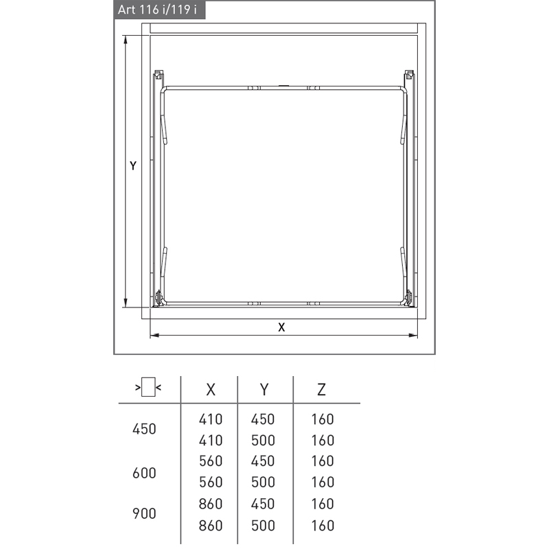 Plnovýsuvný koš s tlumeným dovřením SIGE ART119i (ART-119i) pro korpus šíře 600mm. Šířka korpusu 600mm Výsuv GRASS