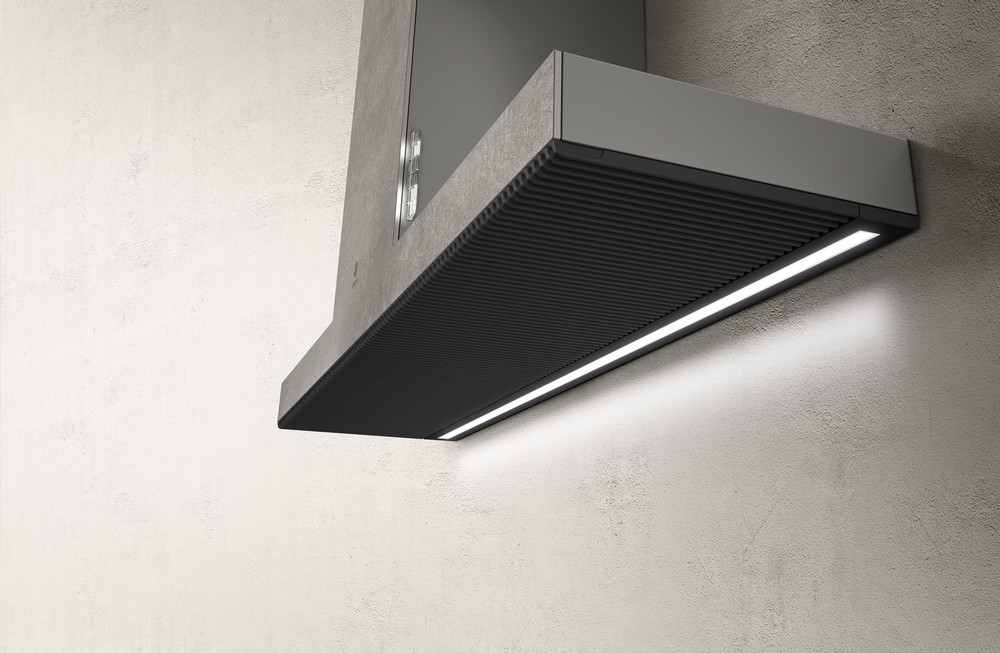 "Estetická linearita se projevuje u hliníkových mřížek s litinovým efektem, které charakterizují všechny tyto odsavače par. Jsou snadno odstranitelné a jsou vybaveny blokovacím systémem, který zabraňuje náhodnému pádu.