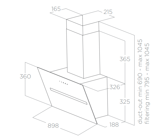 Odsavač par má již v balení černý dekorativní komín.