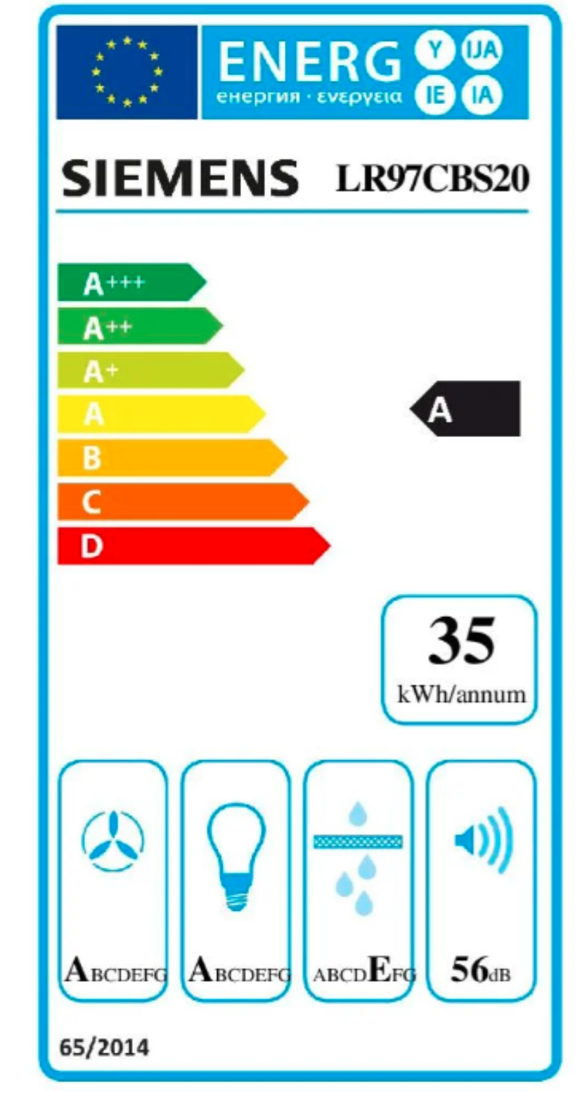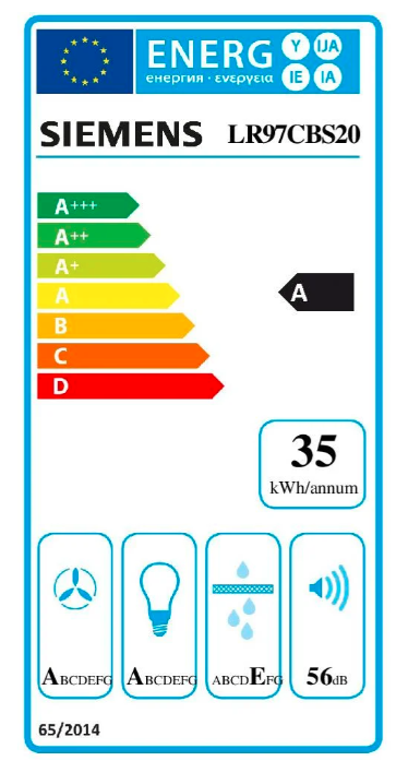 Roční spotřeba energie 34,7 kWh/annum