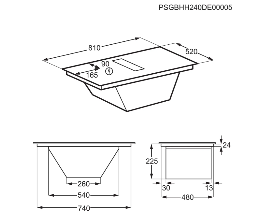 Rozměry varné desky ELECTROLUX jsou 22,5 × 81 × 52 cm (vך×h)